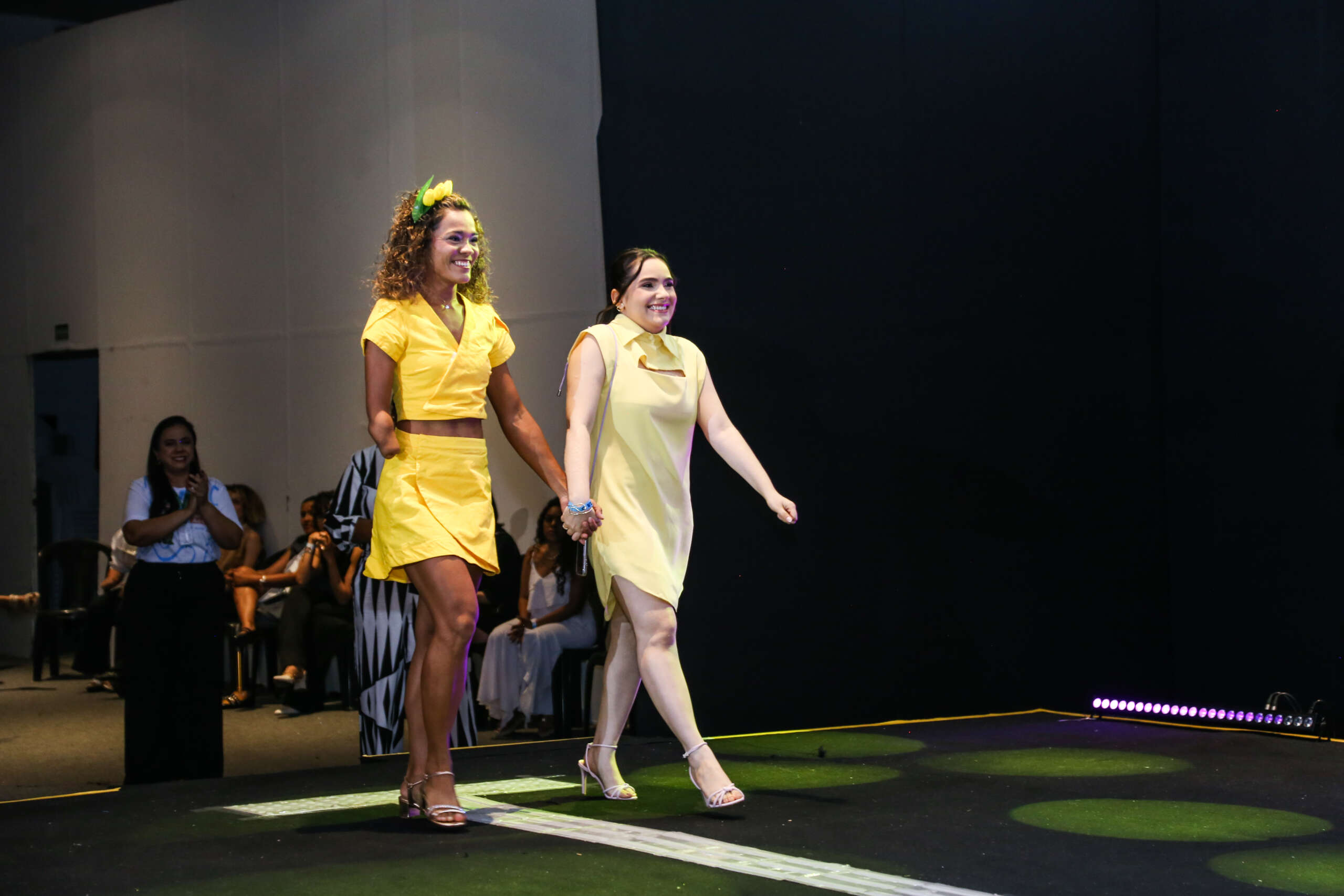 As modelos PCD protagonizaram o evento, com peças pensadas especificamente para suas necessidades. Eduarda Kethelly (19) é cadeirante e viveu sua primeira experiência na passarela usando o look vencedor. “Hoje eu me senti representada, e representei outros cadeirantes também. Muitas vezes a gente tem vergonha, medo de participar. E é muito importante estar aqui, abrindo esse espaço”, afirma. “Foi gratificante para mim, porque eu nunca pensei que eu ia vestir uma roupa que fosse apropriada para a minha deficiência, foi um sonho realizado”.